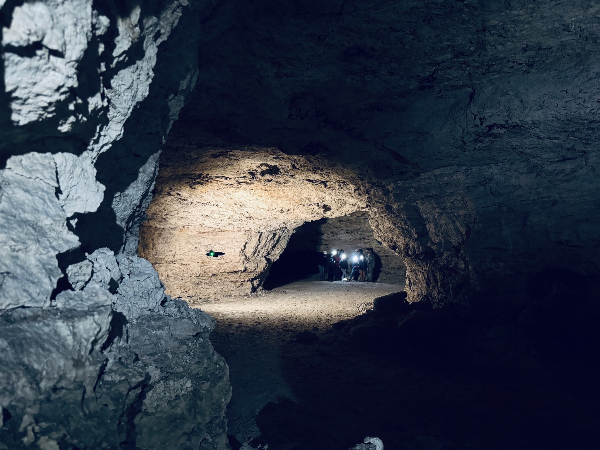 Casques vissés sur la tête et lampes frontales allumées, les Griffin Bots ont exploré les galeries de cette ancienne carrière de calcaire.